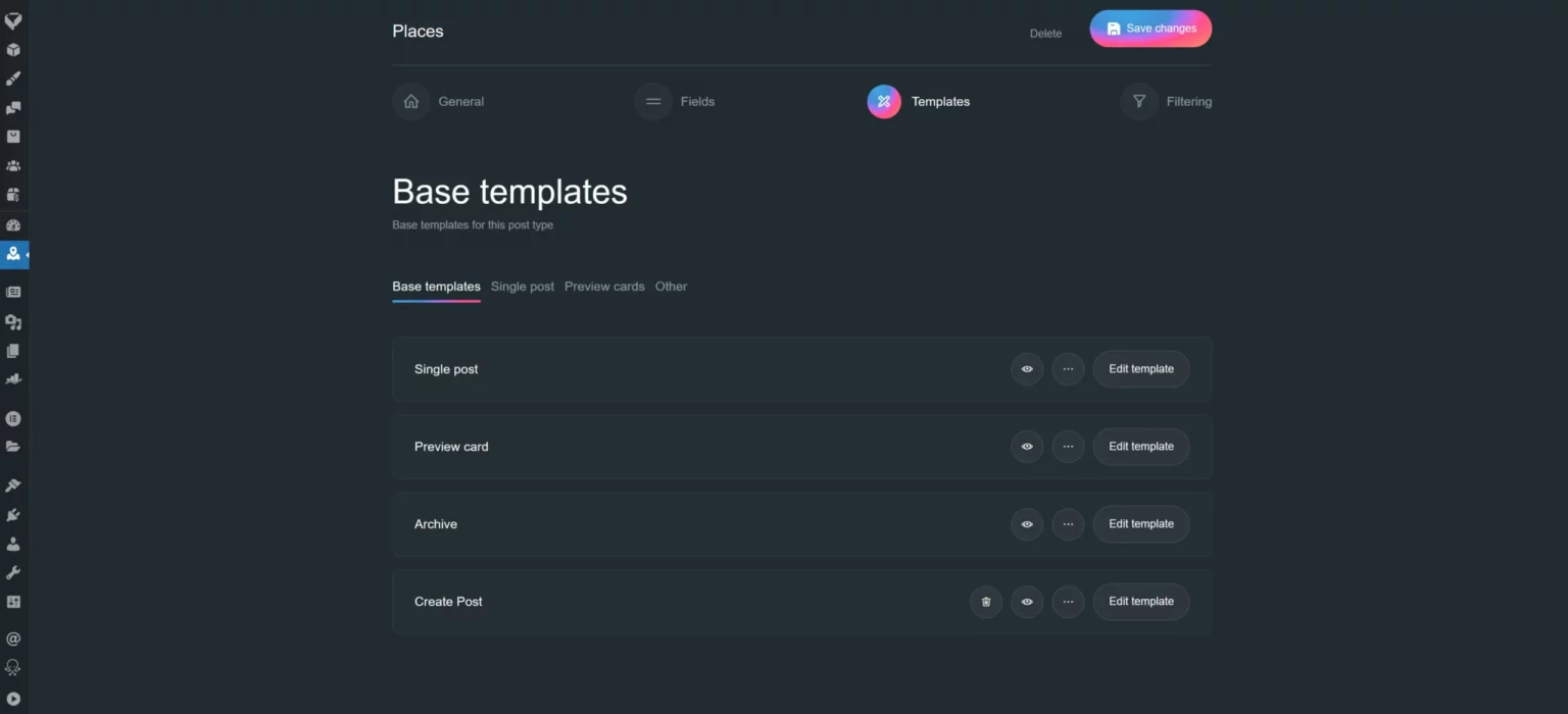 - Single post templates