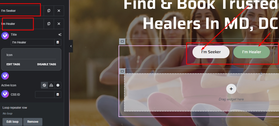 how can i add any page link in tab widget . i try to insert html code but it doesnt work .