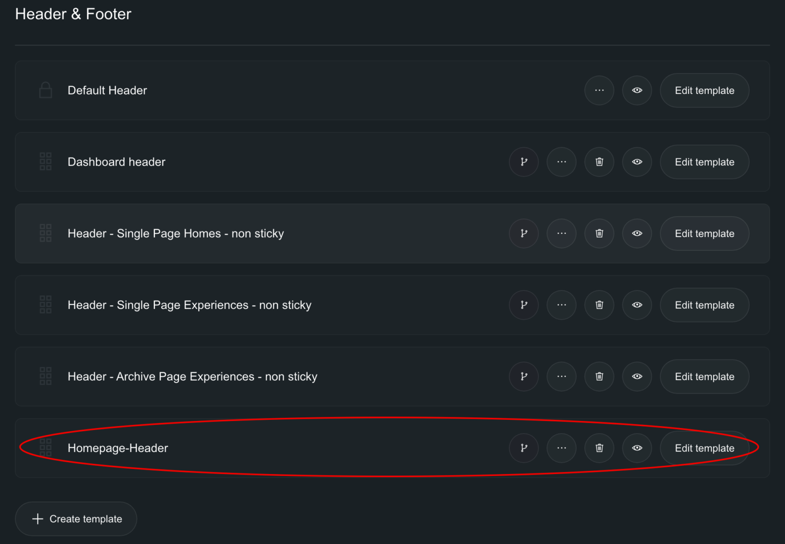 2. If I create a new header, it always overwrites the default header. Maybe I’m missing something? I don’t want the “where” and “rental type” buttons to show on the template called “Header-Homepage”.