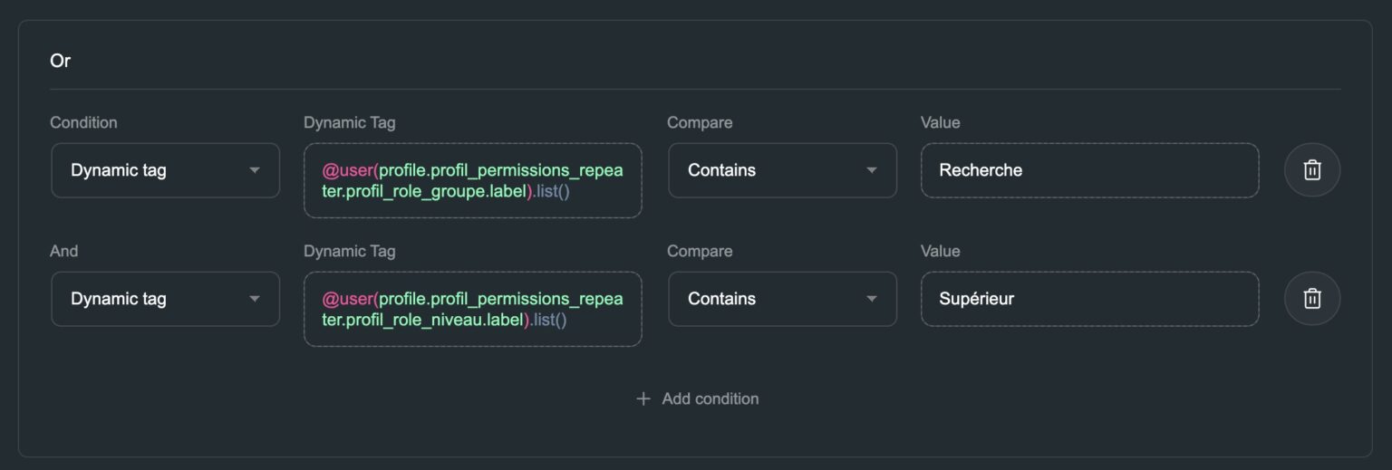 How do I display an element based on the label or value of an item, knowing that the repeater can contain several different items?