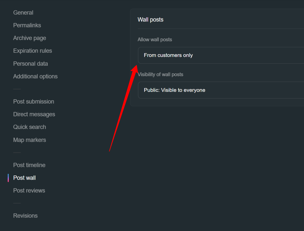 Allow wall posts: From customers only