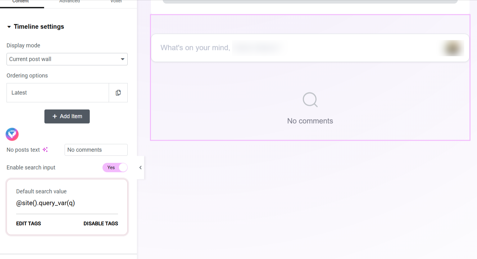 In Elementor I added the Wall widget with Current post wall.
